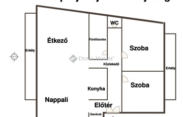 Tágas, amerikai konyhás nappali + 2 külön nyíló hálószoba; minden helyiséghez saját erkély.