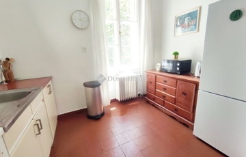 Pécs belvárosának szívében, a Király utcában első emeleti, elegáns, 108 nm alapterületű lakás eladó!A négylakásos társasház legnagyobb lakása a színháztól nem messze, a Kazinczy és Lyceum utca között található. Déli tájolású ablakai fás-parkos, nyugodt társasházi belső udvarra nyílnak, utcafronti szobái akár tovább bonthatóak, igy könnyen nappali-konyha-étkező és 3 külön bejáratú szobássá alakítható! A társasházi közös kertből saját használatú kertrésszel rendelkezik. A lakás jó állapotú és elosztású, 3 tágas szobával, és étkező-konyhával. Helyiségei körben 6 nagy, jó kilátású ablakkal rendelkeznek. Étkezővel egybenyitott konyha, nagy gardróbszoba, kamrahelyiség, külön fürdőszoba és WC, saját használatú előtér találhatóak benne. A gardrób beépített kétszintes ruhaállványzattal, a fürdőszoba káddal, az előszoba kétszárnyú beépített szekrénnyel felszereltek. A lakás nemrég festett és mázolt. Alacsony rezsiköltségű, radiátoros központi fűtéses Bosch gázkazánnal. A magánhasználatú, szintén udvari kilátású feljáró-előtér mellett saját, tágas alagsori tárolóhelyiséggel is rendelkezik. Tetőtérbeépítés és a lakás irodai átalakítása is lehetségesek. Klasszikus stílusú bútorai megegyezés tárgya lehetnek. Tehermentes, nem lakott, gyorsan birtokba vehető! Tágas polgári otthonnak, kényelmes irodának vagy a tetőtér beépítésével remek befektetésnek? Bármely célból gondolja, várom érdeklődő hívását!