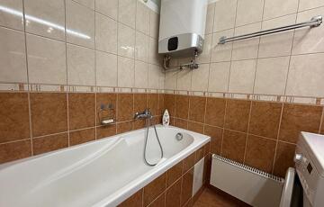 A fürdőszobában kád van, a mosógép ki-és beállása ebben a helyiségben került kialakításra.