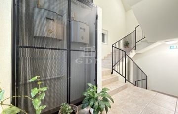 Az eladási ár része egy 16 m²-es fedett gépkocsibeálló, valamint az ahhoz tartozó 4,38 m²-es saját tároló. A társasház térkövezett belső kocsibehajtóval rendelkezik, továbbá a hátsó, zárt udvarban egy további autó számára is biztosított a parkolás.