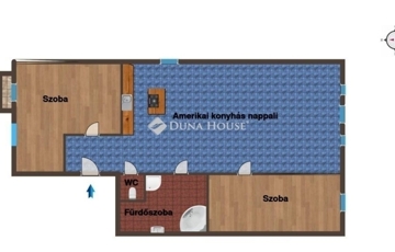 Az ingatlan 82 m²-es, elrendezése átgondolt és rendkívül élhető. A lakás központi része a tágas, egybenyitott konyha–étkező–nappali, amely hatalmas terével tökéletes helyszínt biztosít családi és baráti összejövetelekhez. A nagy ablakfelületeknek köszönhetően a lakás egész nap világos, barátságos hangulatú.