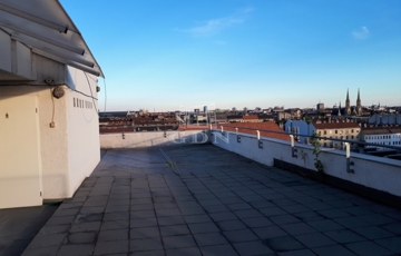 Városligettől 5 perc sétára a különleges Bajza utcai garzonházban, 34 m²-es, 1 szoba+hallos, loggiás lakás, 24 órás portaszolgálattal, napozós tetőterasszal rendelkező házban eladó