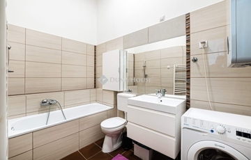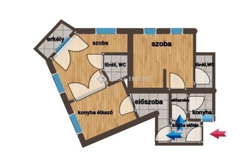 A lakás két apartmanra lett osztva, melynek bejáratai egy közös előszobából nyílnak. A nagyobbik lakrész 47 nm, helységei: előszoba, konyha étkezővel, fürdő WC-vel, zuhannyal, és egy 29 nm -es tágas sarokszoba, erkéllyel. A kisebbik lakrész 39 nm, helységei: előszoba, konyha, fürdő WC-vel, káddal, és egy 26 nm-es tágas szoba.