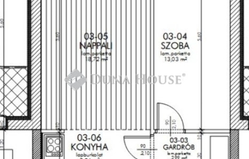 Helyiségei: - nappali+konyha, - szoba, - gardrób, - fürdő+WC, - előtér, - erkély