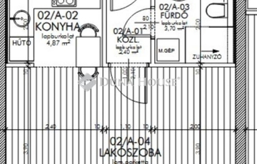 Helyiségei: - előtér, - közlekedő, - nappali+konyha, -fürdő+WC