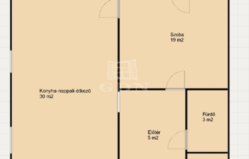 Az 58 m2 - es ingatlan helyet ad egy előtér - folyosónak, egy mindig világos, benapozott 30 m2 - es konyha nappali együttesnek, egy külön nyíló hálószobának, mely erkélykapcsolatos, egy zuhanyzóval felszerelt fürdőnek, valamit egy külön helyiségben található toalettnek.