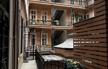 A lakás egyik nagy előnye a két erkély, amelyek kellemes kültéri életteret biztosítanak, valamint a világos, jól benapozott terek, magas ablakainak és a sarokelrendezésnek köszönhetően.
