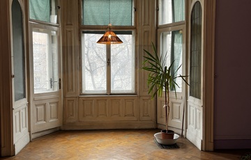 Eladó tágas, világos nagypolgári saroklakás két erkéllyel