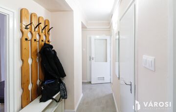 A lakás az utóbbi években felújításon esett át, amely során új külső nyílászárók kerültek beszerelésre, redőnnyel, szúnyoghálóval felszerelve. Konyha, kamra, folyosó, a fürdőkádas fürdőszoba és a külön helyiségben lévő Wc helyiségek burkolata új hidegburkolatra került kicserélésre. Szobák parketta burkolatúak, ablakai délnyugati fekvésűek. Fűtése konvektorokkal, a használati melegvízellátás villanybojlerral van biztosítva.