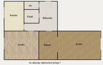 Elosztása révén 2 nagy méretű szoba és hall, amely jelenleg étkezőként funkcionál valamint a konyha és külön fürdő - wc kialakítással minden igényt kielégít az 53 nm-en.