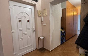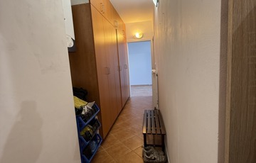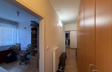 A közlekedőben egy nagy beépített szekrény bővíti a tárolási lehetőségeket.