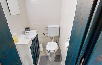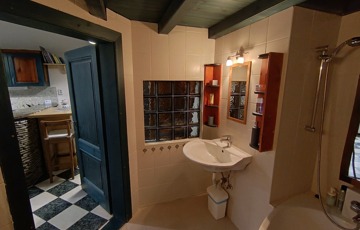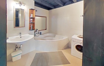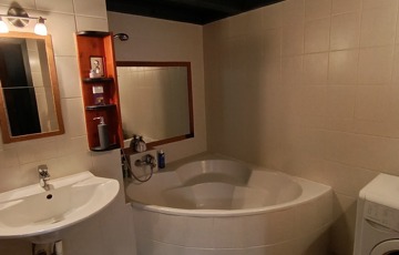 A fürdőszobában tágas sarokkádban fürödhetünk,a wc külön helyiségben kézmosóval is fel van