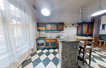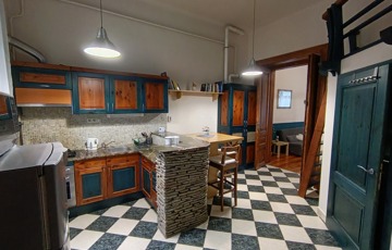 A konyha teljesen felszerelt, a munkapult márvánnyal borított, amely egy szintén márványborítású bárpulttal is ki van egészítve.