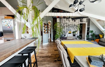 A 104nm-es lakás a Bajnok utca egy impozáns épületének zárószintjén, 1991-ben került kialakításra, és 4 éve teljes felújításon esett át. 3 szoba, nagy, fényes nappali/étkező és konyha, fürdő/wc, wc áll a tulajdonos rendelkezésére.