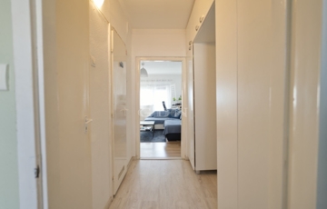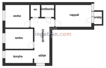 A lakás kifejezetten világos, szobái és a fürdő, WC is külön nyílóak.