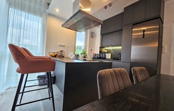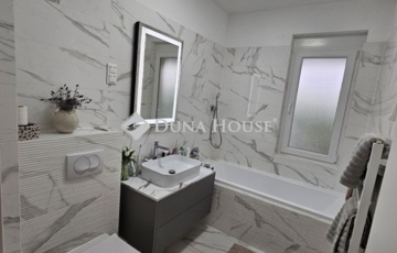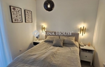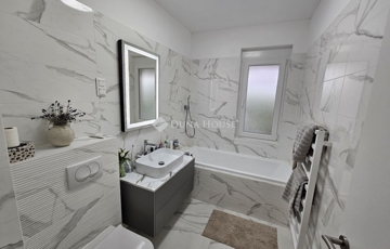 Eladó újszerű kertvárosi lakás, saját parkosított kertkapcsolattal!!!!!Pécs egyik csendes, zöldövezeti részén kínálunk megvételre egy 2023-ban átadott 92 m²-es földszinti lakást, amely minden igényt kielégítő belső kialakítással és kivételes külső adottságokkal rendelkezik.Kertkapcsolat és extra területekA lakáshoz tartozik egy 240 m²-es kizárólagos használatú, parkosított kert, benne egy könnyűszerkezetes, 10 m²-es kisházzal ideális tárolónak vagy hobbihelyiségnek.Két kényelmes terasz, mindkettő beépített, kinyitható árnyékolóval.A kertből kiskapun keresztül is eljuthatunk a két autóbeállóhoz, melyek közvetlenül a lakás előtt helyezkednek el.Belső elrendezés 3 hálószoba Tágas nappali-konyha-étkező egy légtérben 2 igényes fürdőszobaPrémium felszereltség FAP olasz hidegburkolatok Hansgrohe falba süllyesztett csaptelepek Blanco gránit mosogató és csaptelep a konyhában Minőségi német konyhabútor kompakt munkapulttal, konyhaszigettel Új, elektromos fehér alumínium redőnyök minden ablakon Hőszivattyús padlófűtés + fancoil hűtés a kellemes klímáért egész évben Alacsony rezsiköltségek, energiahatékony, és letisztult, igényes belső terek.Elhelyezkedés szempontjából is ideális:A belváros autóval mindössze 7 perc, de a tömegközlekedés is kiváló. A mindennapi ügyintézéshez szükséges szolgáltatások csupán egy percre találhatók: Tesco, Rossmann, gyógyszertár, minden gyalogosan is gyorsan elérhető.