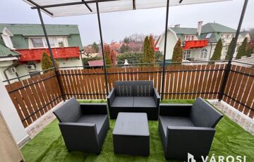 A lakáshoz tartozik egy tágas műfüves kerti bútorokkal ellátott terasz is, ahol élvezheti a zöld környezet nyújtotta nyugalmat. Az udvari gépjárműbeálló biztosítja a kényelmes parkolást. A belváros, a sétálóutca, és a Fürdő közelsége pedig garantálja az igazi Hajdúszoboszlói életérzést!
