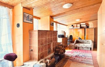 melynek közepén egy különleges cserépkályha teremti meg az otthon meleg, karakteres hangulatát.