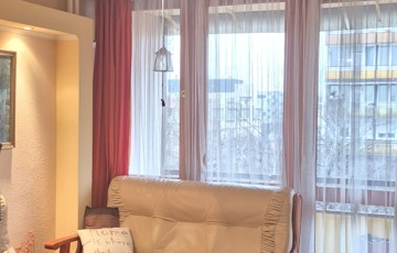 The wooden doors and windows in the apartment are new, the kitchen has plastic windows.