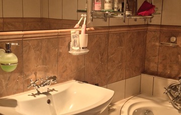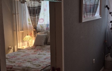 A hálószoba laminált padlós a többi helyiség hidegburkolatot kapott.