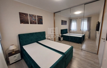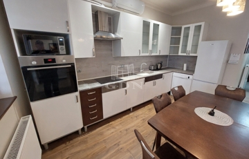 A belső elrendezés minden részlete tudatos tervezés eredménye. Az előtérből külön vendég WC nyílik, valamint egy exkluzív fürdőszoba, ahol wc, kád és zuhany is rendelkezésre áll. A hálószobában egyedi, tükörajtós beépített gardrób teszi izgalmassá a teret és biztosítja a maximális kényelmet. Innen tárul fel a lakás reprezentatív központja: a nagyvonalú, amerikai konyhás nappali–étkező, amely tökéletes teret ad elegáns vendéglátáshoz és meghitt mindennapokhoz egyaránt.