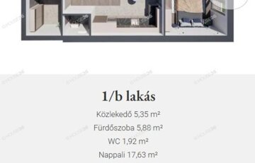 1/ b földszinti lakás teraszkapcsolattal 64,42 m2 + 8,58 m2 terasz, nappali + 2 szoba.