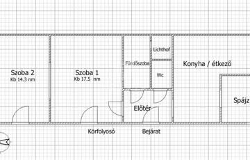 Az ingatlan praktikus elrendezésű: két szobával, kényelmes méretű étkezős konyhával, valamint kamrával rendelkezik. A fürdőszoba és a WC külön helyiségben kapott helyet, ami tovább növeli a lakás komfortját.