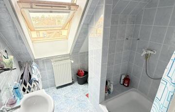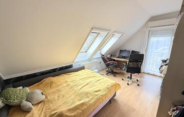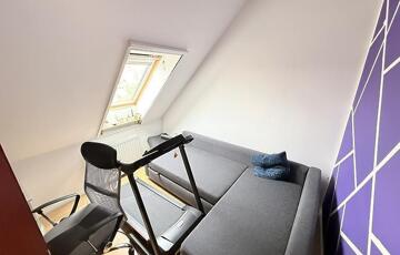 A szobák külön nyílóak, laminált burkolattal, míg a konyha és a vizes helyiségek járólaposak. A fűtésről turbós kombi cirkó gondoskodik egyedi méréssel. Az alsó szinten műanyag, a tetőtérben fa nyílászárók találhatók, redőnnyel ellátva. A lakás duplakomfortos: az alsó szinten kádas fürdőszoba, míg az emeleten zuhanyzós fürdőszoba és külön mellékhelyiség került kialakításra. A 6 m²-es erkély a nappaliból közvetlenül megközelíthető, kellemes kültéri életteret biztosít. A beépített bútorok a vételár részét képezik.