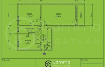 • Lakás: 54 m², 2. emeleti, világos, 2 külön nyíló szoba.