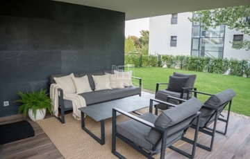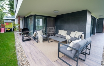 III. kerület Harsánylejtő városrész modern lakónegyedében, kertvárosi környezetben, jó közlekedés és ellátottság mellett, 2020-ban, magas műszaki tartalommal, minőségi kivitelezéssel épült, exkluzív megjelenésű, 3 szintes, 5 lakásos, liftes társasházban, 70 nm-es, földszinti elhelyezkedésű, nappali + 2 hálós, KIVÉTELES ADOTTSÁGOKKAL RENDELKEZŐ, közvetlenül a szobákból nyíló saját 180 nm-es kerttel és 26 nm-es burkolt terasszal rendelkező, amerikai konyhás, DUPLA KOMFORTOS, napos, világos fekvésű, alacsony fenntartású, házközponti fűtésű, minden szoba saját termosztáttal ellátott, egyedi mérésű, újszerű állapotú, klimatizált, 3 rétegű alumínium nyílászárókkal valamint elektromos redőnyökkel szerelt, smart home funkcióval ellátott, egyedi megjelenésű, rugalmasan birtokba vehető, tehermentes, luxus lakás, beépített, prémium gépekkel felszerelt konyhával, kötelezően megvásárolandó 6,5 nm-es tárolóval, és egy elektromos autó töltésére alkalmas 3X16 A. falitöltővel felszerelt teremgarázs beállóval, kulturált lakóközösségű házban eladó.
