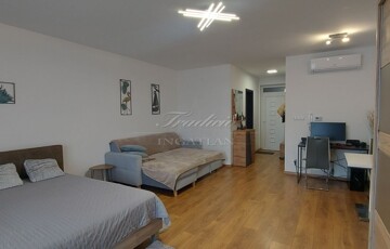 Belépve, az előszobából nyílik a konyha és a zuhanyzó, majd a hatalmas üvegfelülettel rendelkező, hűtő-fűtő klímával ellátott egylégterű nappali-étkező. Igény szerint egy hálófülke kialakítására is van lehetőség.