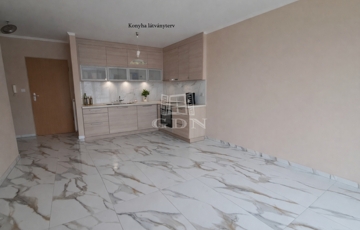 A tágas amerikai konyhás nappali közvetlen kapcsolatban áll az 5 nm-es erkéllyel, amely kellemes kikapcsolódást nyújt a mindennapokban.