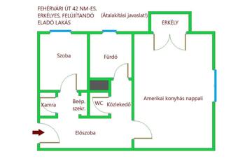 A lakás praktikus elrendezésű, minden négyzetmétere jól kihasználható, ugyanakkor a felújítás során kiválóan alakítható: könnyedén kialakítható amerikai konyhás nappali + külön hálószoba, így modern, élhető otthon hozható létre.