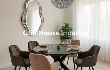 A hatalmas, teljesen gépesített konyhában kényelmesen elfér egy étkezőasztal is, így a mindennapok központi tere lehet. A praktikus kamra, a tágas előszoba – amely akár váróként is funkcionálhat –, a világos loggia, valamint a zuhanyzós fürdőszoba és a külön vendég WC mind a kényelmet szolgálják.