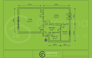 Fűtése 2 db gázüzemű cserépkályha, melegvizet gázbojler állítja elő. Homlokzati nyílászárók kapcsolt gerébtokos fa szerkezetűek. Padlóburkolatok a szobákban fa parketta, a többi helyiségben PVC. Falak festettek, konyhában, fürdőszobában részben csempézett.