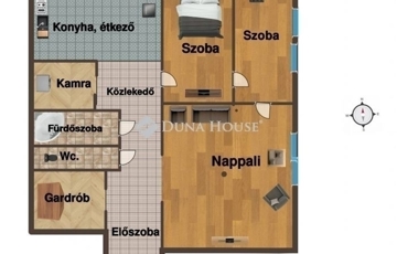 Az ingatlanban tágas világos nappali, egy egész szoba, egy félszoba, ablakos konyha, kamra, sarokkádas fürdőszoba, gardrób, külön Wc. , és közlekedő került kialakításra.