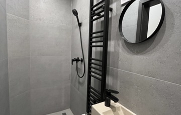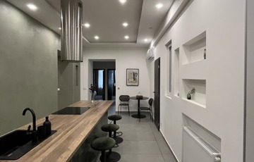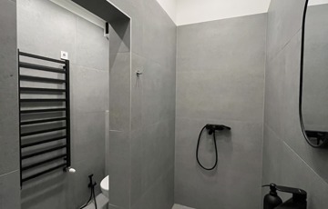 A lakás minden szobájához saját fürdőszoba tartozik – három zuhanyzós és egy kádas, egyedi tervezések alapján, minőségi anyagokból kialakítva. A terek tágasak, világosak, a beépített, design konyha pedig modern és elegáns, tökéletesen illeszkedve a prémium kivitelezéshez.