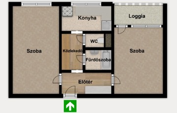 Az ingatlan elosztása rendkívül praktikus: két külön nyíló szoba biztosít kényelmes életteret akár pároknak, kisebb családnak vagy befektetési célra is ideális választás lehet. A nappaliból nyíló loggia kellemes kikapcsolódási lehetőséget nyújt, ahonnan zöld parkra nyíló kilátás fogad – tökéletes helyszín egy reggeli kávéhoz vagy esti pihenéshez.