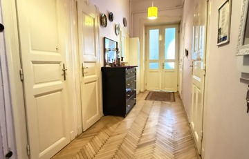 Az ingatlanba belépve egy tágas előszoba fogad, ahonnan a kiváló elosztásnak köszönhetően a helyiségek többsége közvetlenül megközelíthető. A szobák nagyméretűek, parkettával burkoltak, a DNy-i fekvésüknek köszönhetően rendkívül világosak és napfényesek. A nagy belmagasság tovább erősíti a polgári hangulatot, számos átalakítási és belsőépítészeti lehetőséget kínálva.
