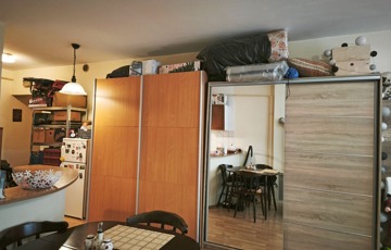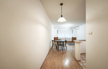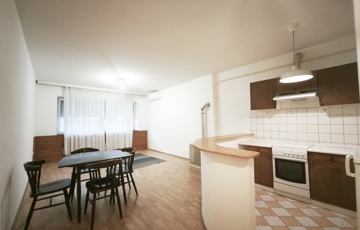 A társas házban a lakóközösség tagjai barátságosak, segítőkészek, a lakás kiváló elhelyezkedésű, frekventált helyen található. A lakás K-i fekvésű, földszinti elhelyezkedése ellenére is kellően világos. Az utcáról kocsival elektromos kapubejárón keresztül jutunk be a zárt közös udvarba, ahol minden tulajdonos számára van lehetőség parkolni. A zárt lépcsőházon keresztül érkezünk a közös folyosóra ahonnan a jó minőségű fa ajtón keresztül jutunk a lakásba. Belépve az előszobával szemben a kádas fürdőszoba nyílik, amiben a toalett is helyet kapott. Balra fordulva a közlekedőből a tágas gépesített, amerikai konyhás, ebédlős nappali tárul elénk. Ebben a nagy térben jobbra a konyhai részt egy félkör alakú pult választja el, ami előtt egy étkező asztal is bőven elfér, szolgálva a komfortos étkezést a család számára. A nagyon tágas helységben, bőven marad hely a pihenésre szánt nappali rész kialakítására is. A szoba a mellékutcára néz ennek ellenére csendes, világos. A lakásban a két éve beépített klíma szolgálja a komfort érzetet nyáron.