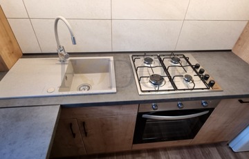 • mennyezetig beépített konyha + reggelizősarok