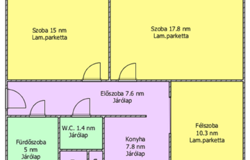 Az ingatlanban 2 szoba, 1 félszoba, fürdőszoba, külön nyíló W.C., konyha, kamra, előszoba található.