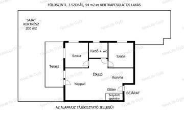 16 m²-es terasz + kb. 200 m² saját kert