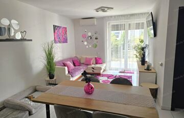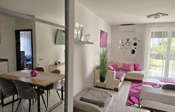 Újszerű, kertkapcsolatos, FÖLSZINTI lakás eladó Győr–Révfalu frekventált részén – saját parkolóval