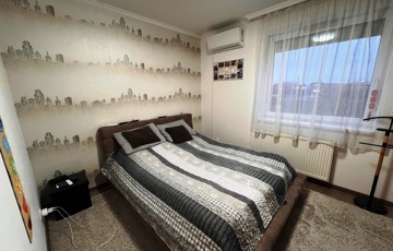 Tégla építésű lakás liftes társasház 2. emeletén található, házközponti fűtéses egyedi mérővel, klímával, riasztóval redőnnyel szerelt műanyag nyílászárós, laminált padló, járólap burkolatú.
