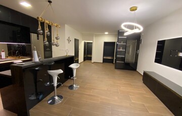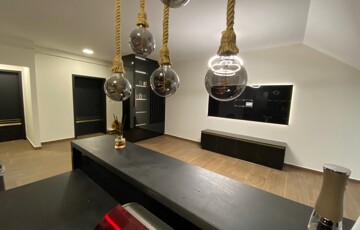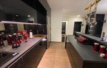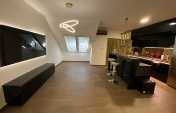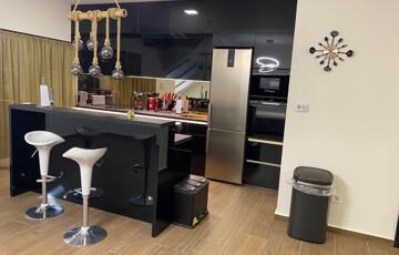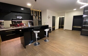 A lakás teljes körűen bútorozott, minőségi Bosch gépesítéssel felszerelt (mosogatógép, mosó-szárítógép).