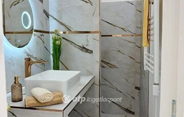 Az esztétikáról minőségi és stílusos anyagok gondoskodnak, a TELJES BERENDEZÉS a vételár részét képezi ( hűtő-fűtő klíma, mosogatógép, páraelszívó, bútorok és kiegészítők ), igazi beleszeretős kis lakás!