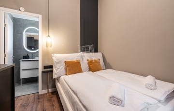 Az ablakok világos fényudvarra és belső udvarra néznek, így a lakrészek csendesebb környezetet biztosítanak a belváros nyüzsgése mellett.