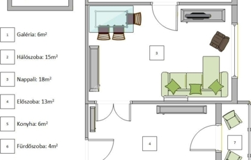 • valamint kialakításra került egy 6 m²-es álló galéria, amely praktikus plusz életteret biztosít.