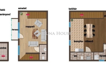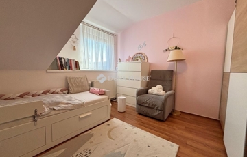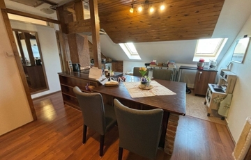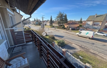 Szombathely kámoni városrészén jó állapotú, nettó 90 m2 alapterületű lakás eladó. Az ingatlan egy kétlakásos társasház utcafronti oldalára nyílik, ahol egy kis udvarrész is tartozik hozzá. A térkövezett udvaron parkolni is lehet egy autóval, további egy gépkocsival a kapu előtti hídon. A lakás nagyobb része két szintre osztott, az emeleten egy tágas világos nappali fedett terasszal és egy mellékhelyiség van kialakítva, a tetőtérben kapott helyet a két hálószoba, a konyha étkezővel, egy fürdő és egy kis háztartási helyiség wc-el. A földszinti bejárati részen van még egy kis tároló és az előszoba. Az ingatlan rendezett karbantartott állapotú, az elmúlt években megújult többek között a nappali, és a nyílászárók is korszerűsítve lettek, az ablakok redőnnyel és rovarhálóval is fel vannak szerelve. A tetőtéri ablakokat tavaly cserélték korszerűbbre.